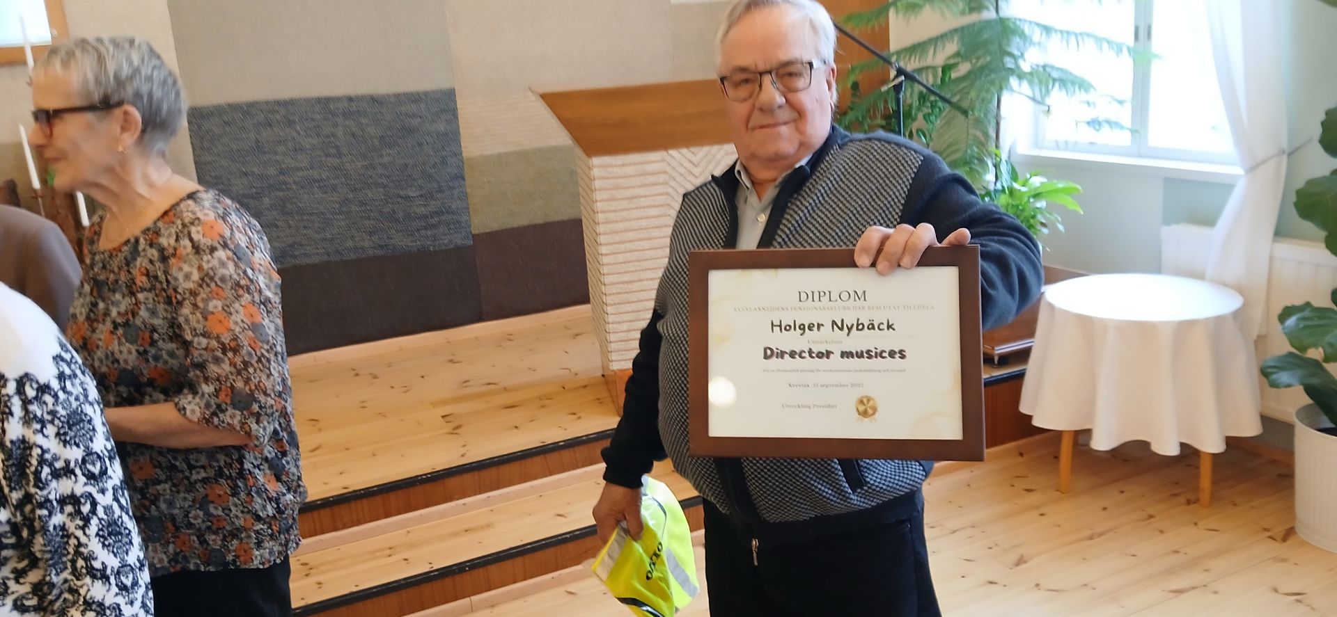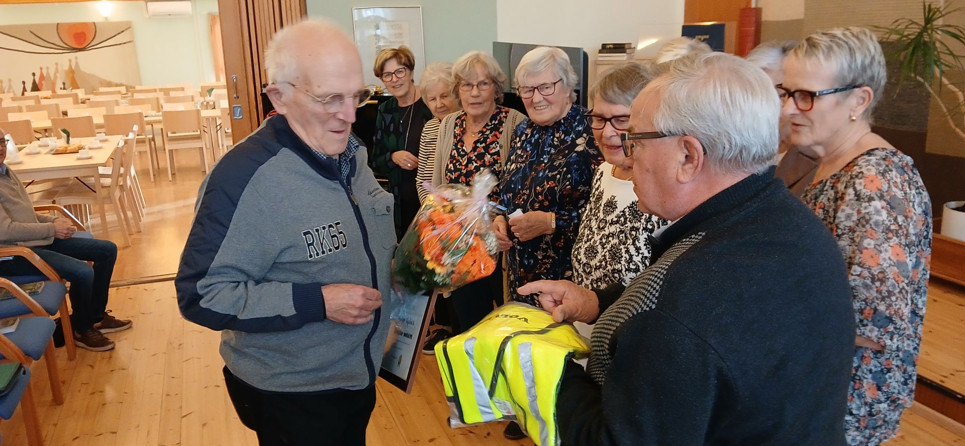 Klubbens mångårige körledare Holger Nybäck blev avtackad av Alf Norrgård och kören vid månadsmötet 22.10.